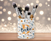 Inform when this item available Yellow, Navy & Black Floral Initial Letter Name Make Up Brushes Ceramic Pot