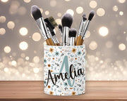 Inform when this item available Teal Blue & Black Floral Initial Letter Name Make Up Brushes Ceramic Pot